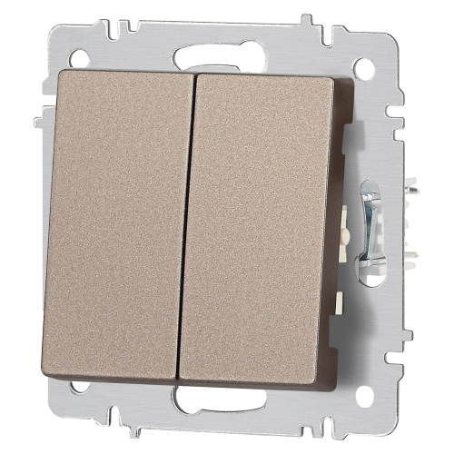 Выключатель 2-клавишный серии Intro Accent скрытой установки механизм цвет бронза 6-104-08. Номинальные характеристики 10А 250В. Выполнен из негорючего термопласта, оснащён винтовыми клеммами. Парные клеммы обеспечивают соединение шлейфом. Монтаж в подрозетник производится и на лапки, и на винты. Рамка приобретается отдельно. В серии представлены рамки до 5 постов: на 1 пост - 6-501-хх, на 2 поста - 6-502-хх, на 3 поста - 6-503-хх, на 6 поста - 4-504-хх, на 5 постов - 6-505-хх (где хх - цветовой код: 01 - белый, 01М - матовый белый, 02 - слоновая кость, 03 - алюминий, 04 - шампань, 05 - антрацит, 06 - перламутр, 07 - графит, 08 - бронза, 09 - титан, 10 - венге, 11 - сосна)