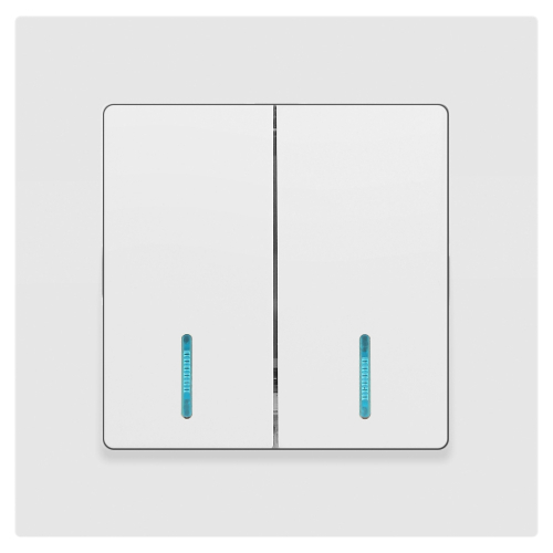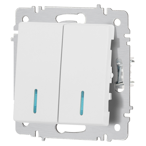 Выключатель 2-клавишный с подсветкой серии Intro Accent скрытой установки механизм цвет белый матовый 6-105-01М. Номинальные характеристики 10А 250В. Выполнен из негорючего термопласта, оснащён винтовыми клеммами. Парные клеммы обеспечивают соединение шлейфом. Монтаж в подрозетник производится и на лапки, и на винты. Рамка приобретается отдельно. В серии представлены рамки до 5 постов: на 1 пост - 6-501-хх, на 2 поста - 6-502-хх, на 3 поста - 6-503-хх, на 6 поста - 4-504-хх, на 5 постов - 6-505-хх (где хх - цветовой код: 01 - белый, 01М - матовый белый, 02 - слоновая кость, 03 - алюминий, 04 - шампань, 05 - антрацит, 06 - перламутр, 07 - графит, 08 - бронза, 09 - титан, 10 - венге, 11 - сосна)