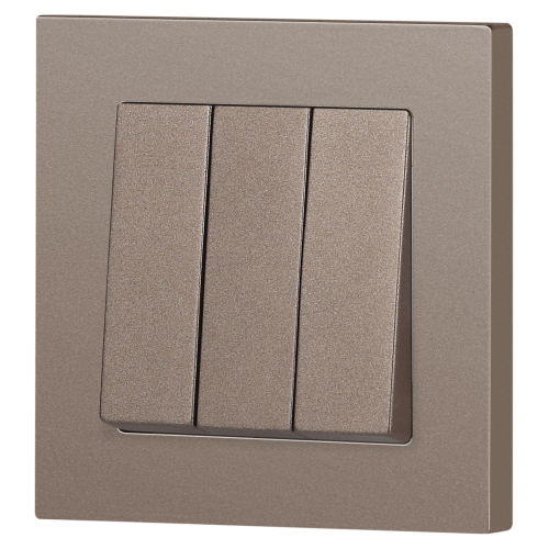 Выключатель 3-клавишный серии Intro Accent скрытой установки механизм цвет бронза 6-106-08. Номинальные характеристики 10А 250В. Выполнен из негорючего термопласта, оснащён винтовыми клеммами. Парные клеммы обеспечивают соединение шлейфом. Монтаж в подрозетник производится и на лапки, и на винты. Рамка приобретается отдельно. В серии представлены рамки до 5 постов: на 1 пост - 6-501-хх, на 2 поста - 6-502-хх, на 3 поста - 6-503-хх, на 6 поста - 4-504-хх, на 5 постов - 6-505-хх (где хх - цветовой код: 01 - белый, 01М - матовый белый, 02 - слоновая кость, 03 - алюминий, 04 - шампань, 05 - антрацит, 06 - перламутр, 07 - графит, 08 - бронза, 09 - титан, 10 - венге, 11 - сосна)