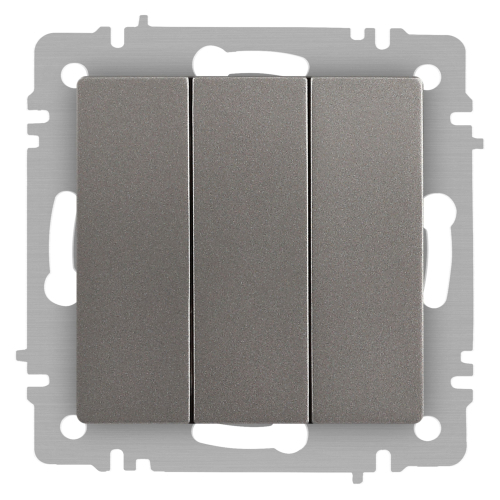Выключатель 3-клавишный серии Intro Accent скрытой установки механизм цвет титан 6-106-09. Номинальные характеристики 10А 250В. Выполнен из негорючего термопласта, оснащён винтовыми клеммами. Парные клеммы обеспечивают соединение шлейфом. Монтаж в подрозетник производится и на лапки, и на винты. Рамка приобретается отдельно. В серии представлены рамки до 5 постов: на 1 пост - 6-501-хх, на 2 поста - 6-502-хх, на 3 поста - 6-503-хх, на 6 поста - 4-504-хх, на 5 постов - 6-505-хх (где хх - цветовой код: 01 - белый, 01М - матовый белый, 02 - слоновая кость, 03 - алюминий, 04 - шампань, 05 - антрацит, 06 - перламутр, 07 - графит, 08 - бронза, 09 - титан, 10 - венге, 11 - сосна)