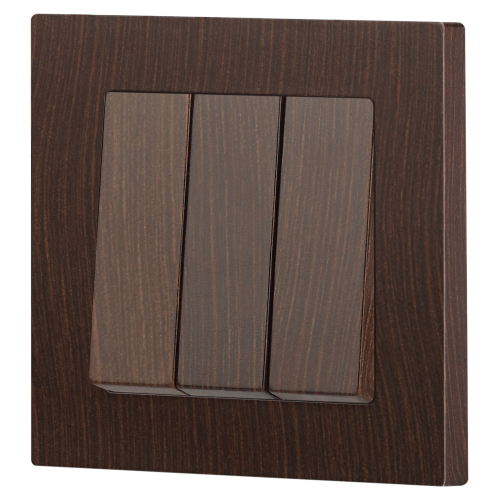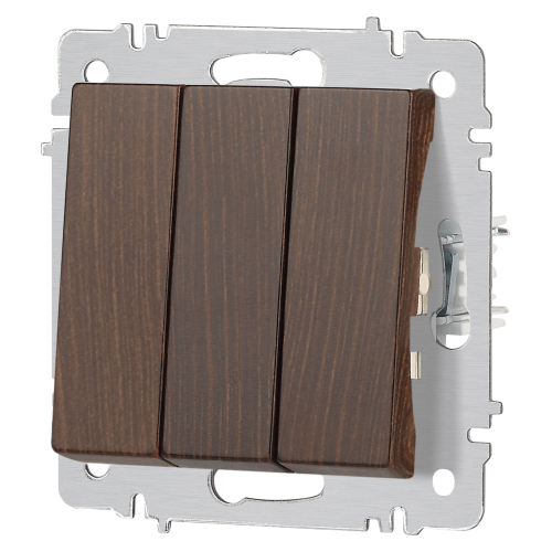 Выключатель 3-клавишный серии Intro Accent скрытой установки механизм цвет венге 6-106-10. Номинальные характеристики 10А 250В. Выполнен из негорючего термопласта, оснащён винтовыми клеммами. Парные клеммы обеспечивают соединение шлейфом. Монтаж в подрозетник производится и на лапки, и на винты. Рамка приобретается отдельно. В серии представлены рамки до 5 постов: на 1 пост - 6-501-хх, на 2 поста - 6-502-хх, на 3 поста - 6-503-хх, на 6 поста - 4-504-хх, на 5 постов - 6-505-хх (где хх - цветовой код: 01 - белый, 01М - матовый белый, 02 - слоновая кость, 03 - алюминий, 04 - шампань, 05 - антрацит, 06 - перламутр, 07 - графит, 08 - бронза, 09 - титан, 10 - венге, 11 - сосна)
