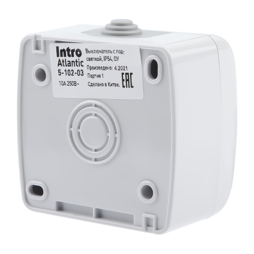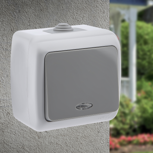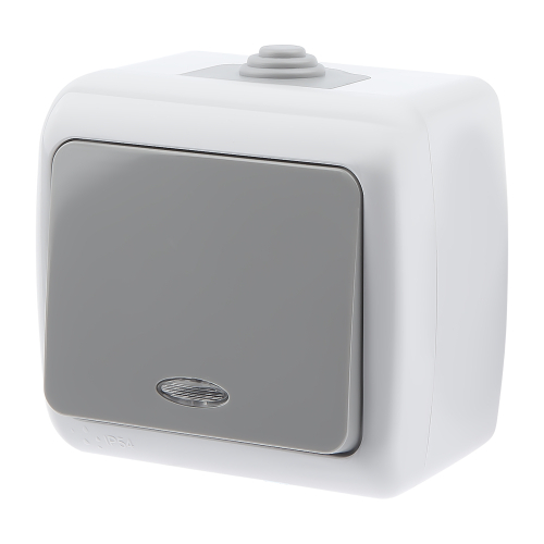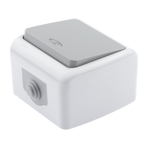 Выключатель с подсветкой, 10А-250В, IP54, ОУ, Atlantic, серый