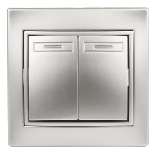 Выключатель Intro Plano 1-104-03 двухклавишный, 10А-250В, IP20, СУ, Plano, алюминий