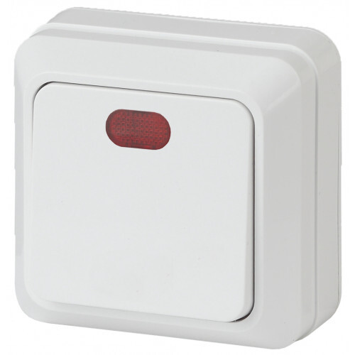 Выключатель Intro Quadro 2-102-01 одноклавишный с подсветкой, 10А-250В, IP20, ОУ, белый