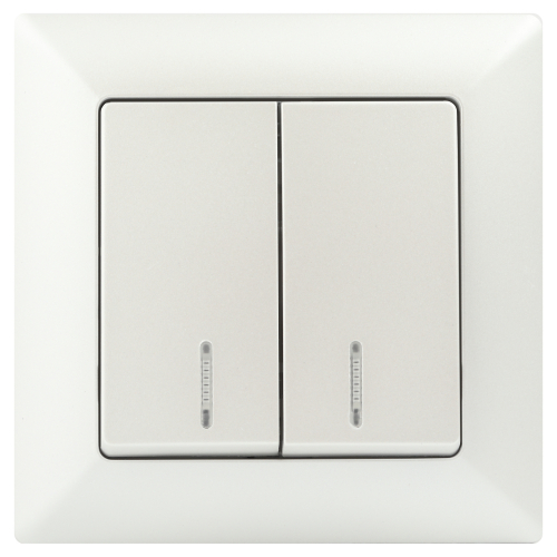 Выключатель 2-клавишный с подсветкой серии Intro Solo скрытой установки цвет перламутр 4-105-06. Номинальные характеристики 10А 250В . Выключатель выполнен из качественного негорючего термопласта, укомплектован одноместной рамкой, оснащён винтовыми клеммами. Вертикальное расположение клемм обеспечивает удобный и надёжный монтаж. Клеммы с двумя отверстиями позволяют соединять соседние выключатели шлейфом. Установка в подрозетник производится как на монтажные лапки, так и на винты. Для установки 2-х и более выключателей в несколько подрозетников в ряд дополнительно используются многоместные рамки: 2-х постовая - 4-502-хх, 3-х постовая 4-503-хх, 4-х постовая - 4-504-хх (где хх - цветовой код: 01 - белый, 02 - слоновая кость, 03 - алюминий, 04 - шампань, 05 - антрацит, 10 - венге, 11 - сосна).