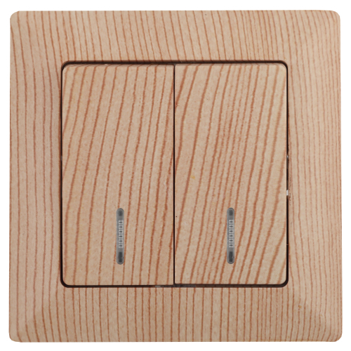 Выключатель Intro Solo 4-105-11 двухклавишный с подсветкой, 10А-250В, IP20, СУ, сосна