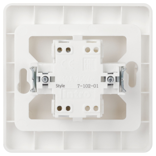 Выключатель 1-клавишный с подсветкой серии Intro ST скрытой установки цвет белый 7-102-01. Номинальные характеристики 10А 250В . Выключатель выполнен из качественного негорючего термопласта, укомплектован одноместной рамкой, оснащён винтовыми клеммами. Вертикальное расположение клемм обеспечивает удобный и надёжный монтаж. Клеммы с двумя отверстиями позволяют соединять соседние выключатели шлейфом. Установка в подрозетник производится как на монтажные лапки, так и на винты.