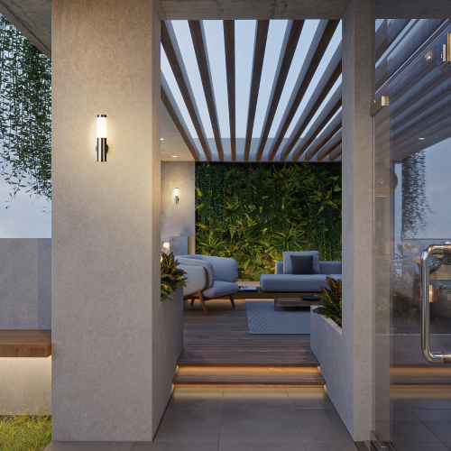 Светильник декоративный настенный WL17 создает интересные световые композиции, подчеркивает структуру материалов. Подходит для наружного уличного освещения и влажных помещений. Цоколь для источника света E27, напряжение питания 220В ~50/60Гц, материал нержавеющая сталь + пластик, цвет светильника хром/белый, размер 150*360*118 мм, D76 мм, максимальная мощность лампы 50 Вт, степень защиты IP44