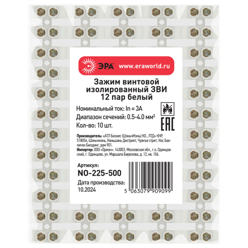 Зажимы винтовые изолированные ЗВИ-нг ЭРА представляют из себя контактную латунную колодку с зажимным винтом, заключенную в диэлектрический негорючий корпус и предназначены для создания проходного соединения всех типов проводников, защищая провод от повреждения и исключая возможность замыкания на корпус электроустановки. Применяются в распаячных коробках, для подключения осветительного и другого электрооборудования.