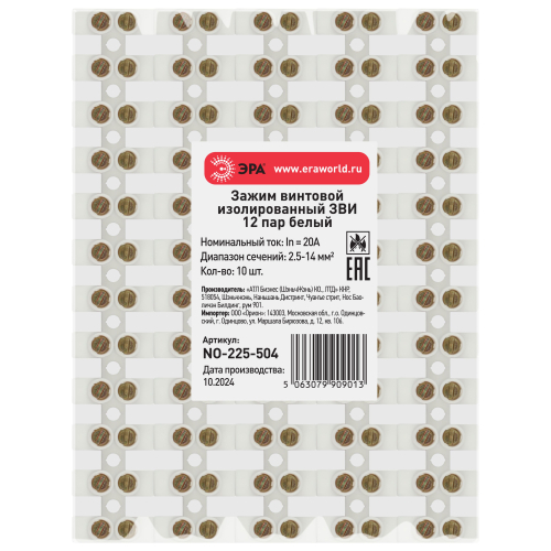 Зажимы винтовые изолированные ЗВИ-нг ЭРА представляют из себя контактную латунную колодку с зажимным винтом, заключенную в диэлектрический негорючий корпус и предназначены для создания проходного соединения всех типов проводников, защищая провод от повреждения и исключая возможность замыкания на корпус электроустановки. Применяются в распаячных коробках, для подключения осветительного и другого электрооборудования.