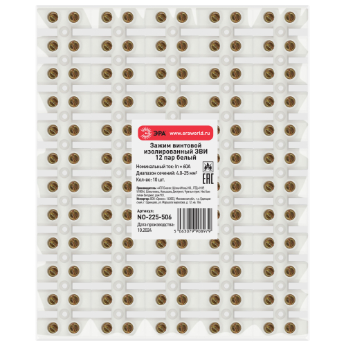 Зажимы винтовые изолированные ЗВИ-нг ЭРА представляют из себя контактную латунную колодку с зажимным винтом, заключенную в диэлектрический негорючий корпус и предназначены для создания проходного соединения всех типов проводников, защищая провод от повреждения и исключая возможность замыкания на корпус электроустановки. Применяются в распаячных коробках, для подключения осветительного и другого электрооборудования.