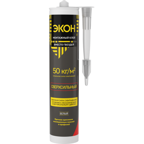 Клей монтажный сверхсильный Экон 1378328 предназначен для любых видов декоративных панелей и элементов из пластика и дерева, плинтусов и фризов. Применяется для стиропора, пенопласта, полистирола, дерева, металла, ПВХ, керамики, ДСП, гипсокартона, пробки, гипса и других подобных материалов. Время для позиционирования склеиваемых деталей — 15 минут., а первоначальная сила схватывания — 60 кг/м2.