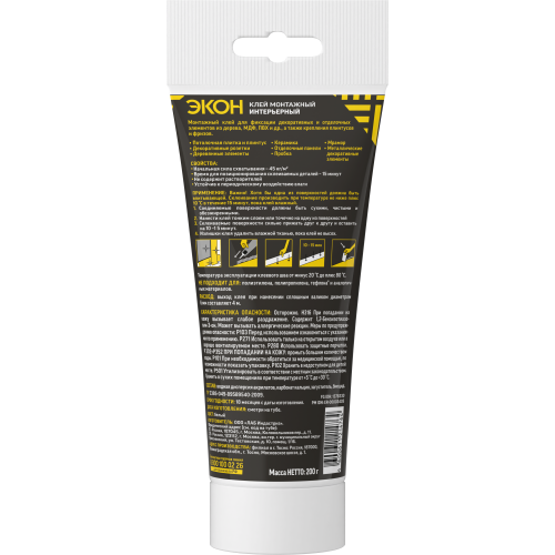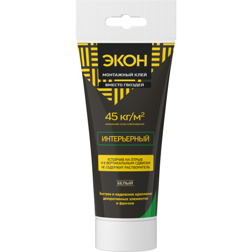 Клей, предназначенный для любых видов декоративных панелей и элементов из пластика и дерева, плинтусов и фризов. Применяется для стиропора, пенопласта, полистирола, дерева, металла, ПВХ, керамики, ДСП, гипсокартона, пробки, гипса и других подобных материалов. Первоначальная сила склеивания — 45 кг/м2.