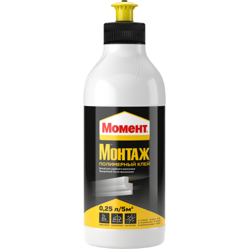 Универсальный полимерный монтажный клей на основе акриловой водной дисперсии. Не содержит органических растворителей, отличается высокой начальной адгезией. Применим для заполнения щелей глубиной до 5 мм.