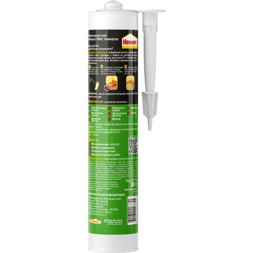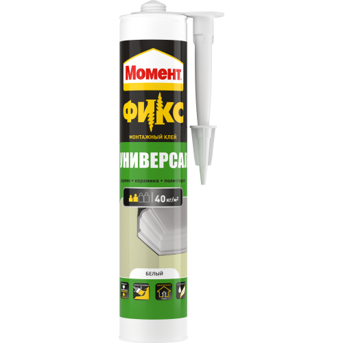 Момент ФИКС Универсал идеально подходит для крепления потолочной плитки и плинтусов, металлических и деревянных элементов, отделочных панелей, декоративных розеток.