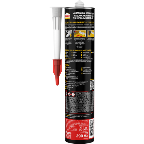 Склеиваемые материалы: Идеально подходит для крепления изделий из стекла, камня, древесины, оргстекла, ПВХ, МДФ, гипсокартона, фанеры, стекловолокна, металла, керамики и др. Подходит для приклеивания на поверхности из бетона, камня, кирпича, дерева, гипсокартона, керамики и др. Обеспечивает надёжное крепление на неровных вертикальных поверхностях. Не подходит: для полиэтилена, полипропилена, тефлона, зеркал, материалов, неустойчивых к воздействию органических растворителей. Не рекомендуется применять в местах, подверженных постоянному воздействию воды