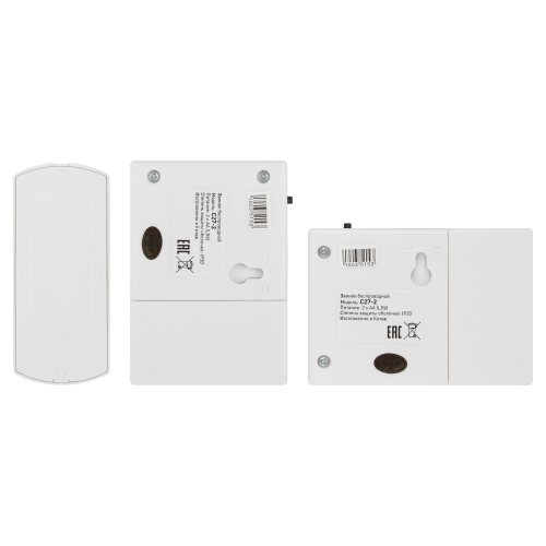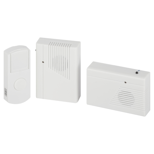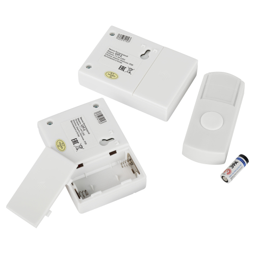 Беспроводной электрический дверной звонок с 2 динамиками в комплекте. Динамики можно с удобством разместить в разных комнатах или разных помещениях (актуально для дач и загородных домов с многочисленными постройками на территории). Радиус действия до 100 метров. Кнопка защищена от влаги и пыли (IP44). В числе преимуществ 6 встроенных мелодий и световой сигнал. Звонок работает от батареек: для кнопки - 1 шт А23 (входит в комплект), для каждого из динамиков - по 2 шт АА пальчиковые (в комплект не входят).